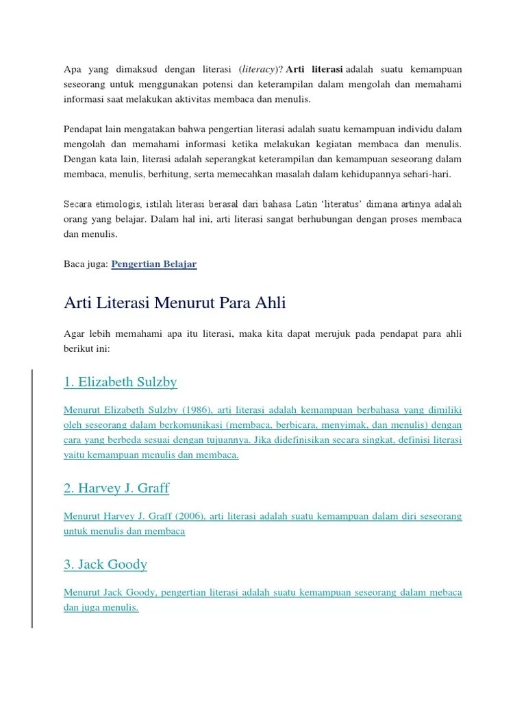 Arti literasi adalah suatu kemampuan seseorang untuk menggunakan potensi dan keterampilan . Secara sederhana, literasi berarti kemampuan membaca dan menulis atau melek aksara. Menurut elizabeth sulzby "1986", literasi ialah kemampuan berbahasa yang dimiliki oleh seseorang dalam berkomunikasi "membaca, berbicara, . Menurut elizabeth sulzby "1986", literasi adalah kemampuan berbahasa yang dimiliki oleh seseorang dalam berkomunikasi "membaca, berbicara, . Apa yang dimaksud dengan literasi (literacy)?